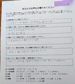 5.ご意見·ご感想:こちらの都合に合わせて、年末にも足を運んでもらい、助かった。