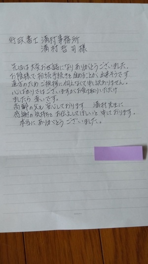 遠方のためご挨拶に伺えなくて申し訳ありません。