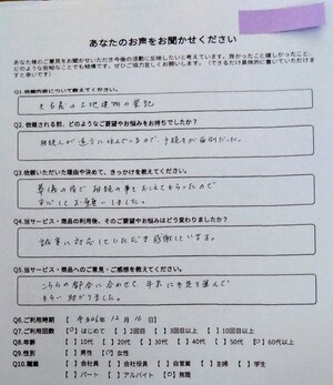 2.要望:以前、父名義の土地を自分の名義にした時も、行政書士さんにお願いしたので、その方が手続きがスムーズにいくと思った。